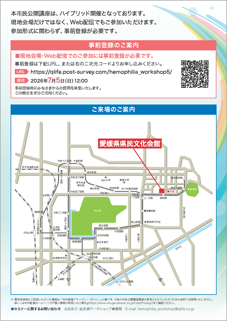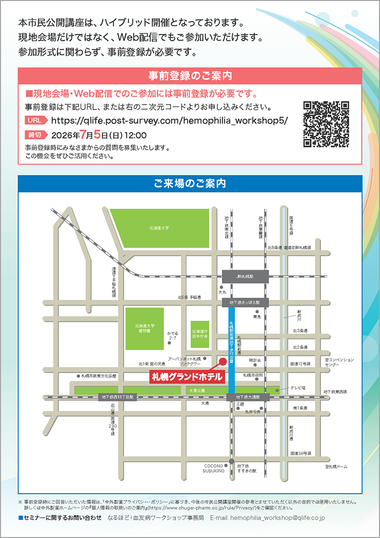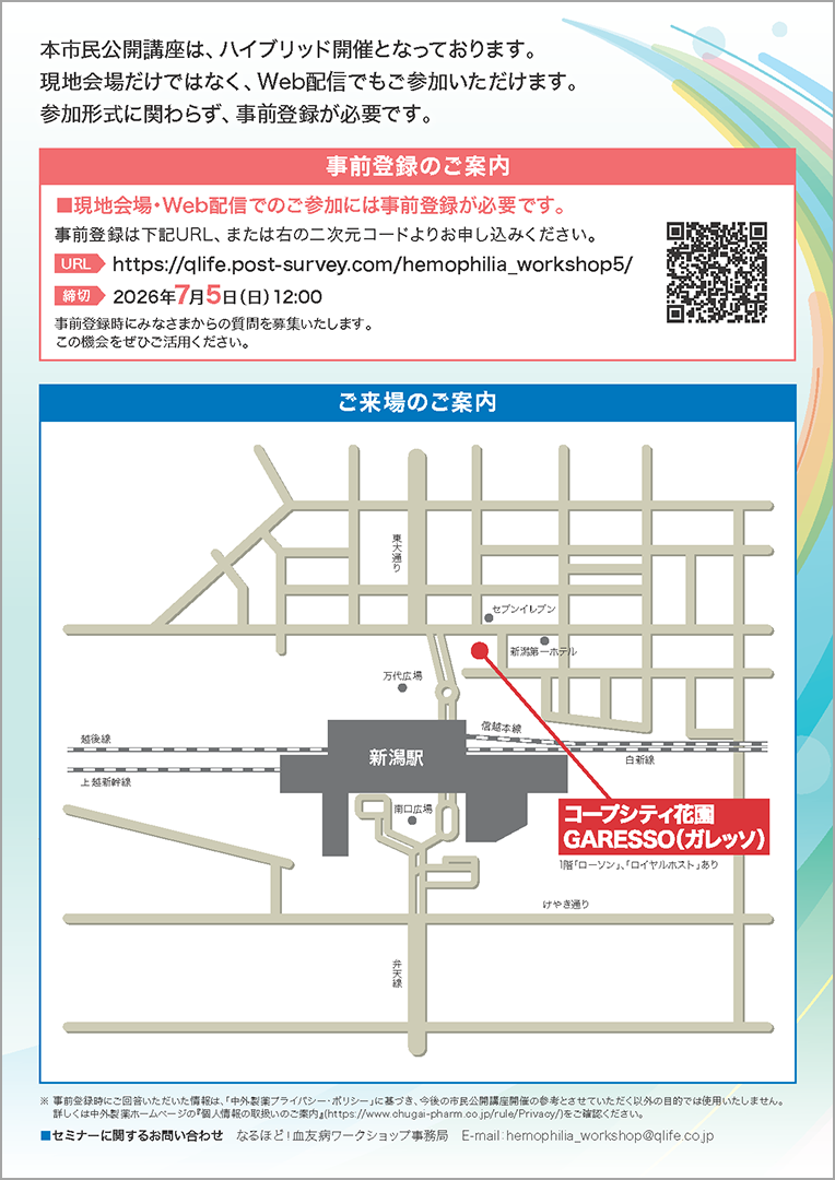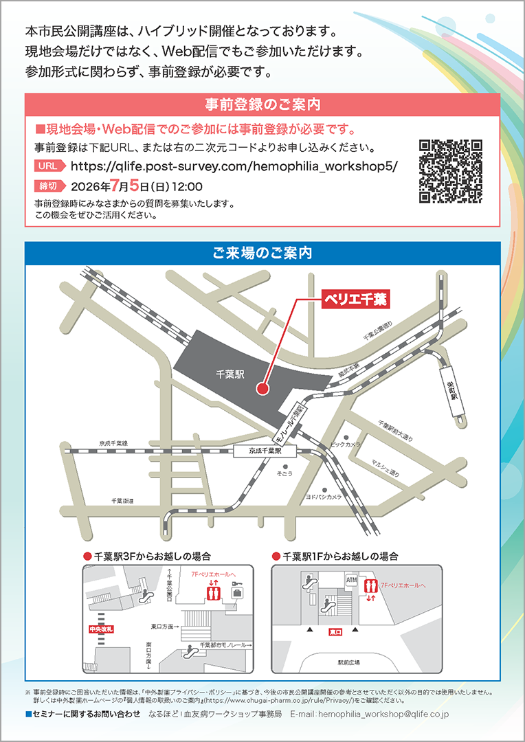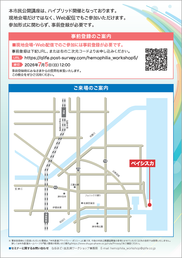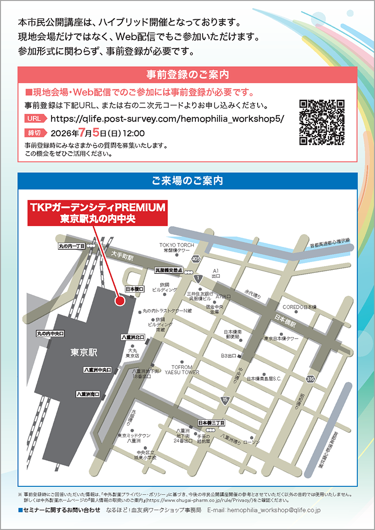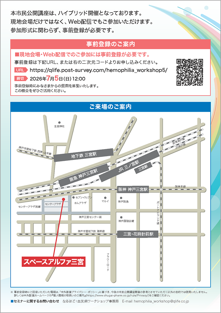 2026年7月5日(日)に、「なるほど!血友病ワークショップ5」と題して市民公開講座が開催されます。
