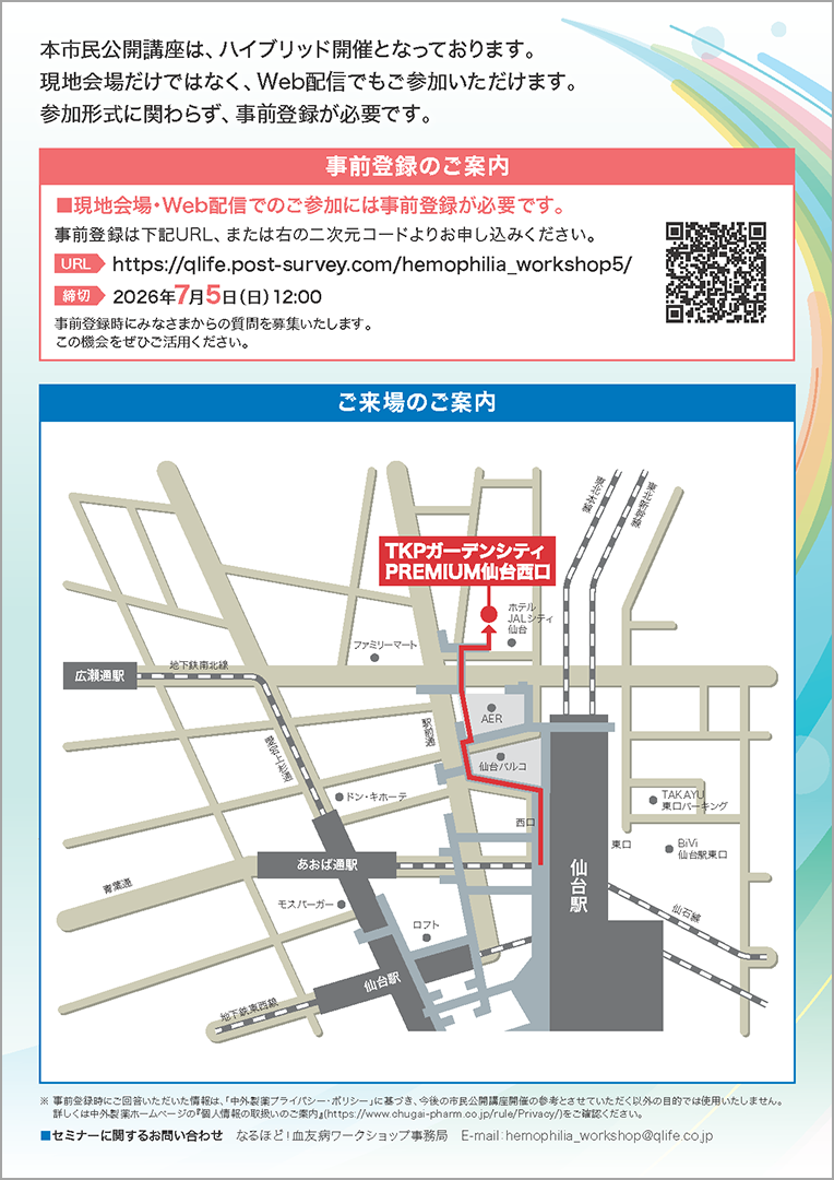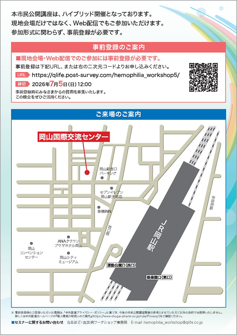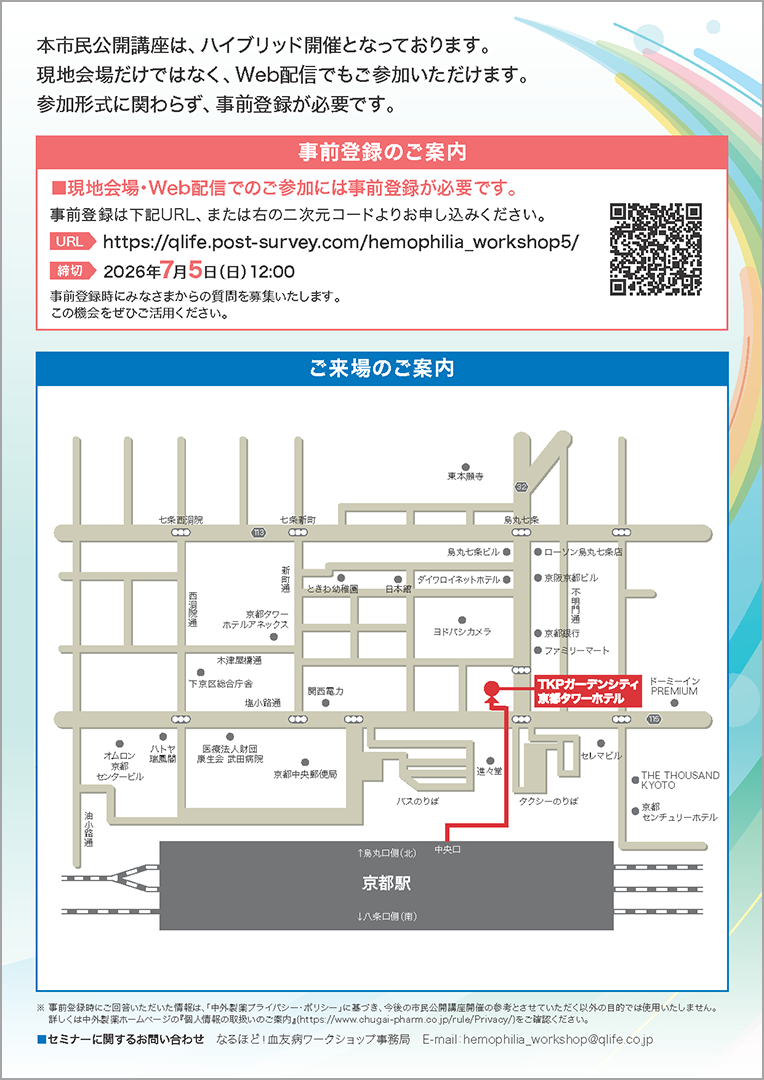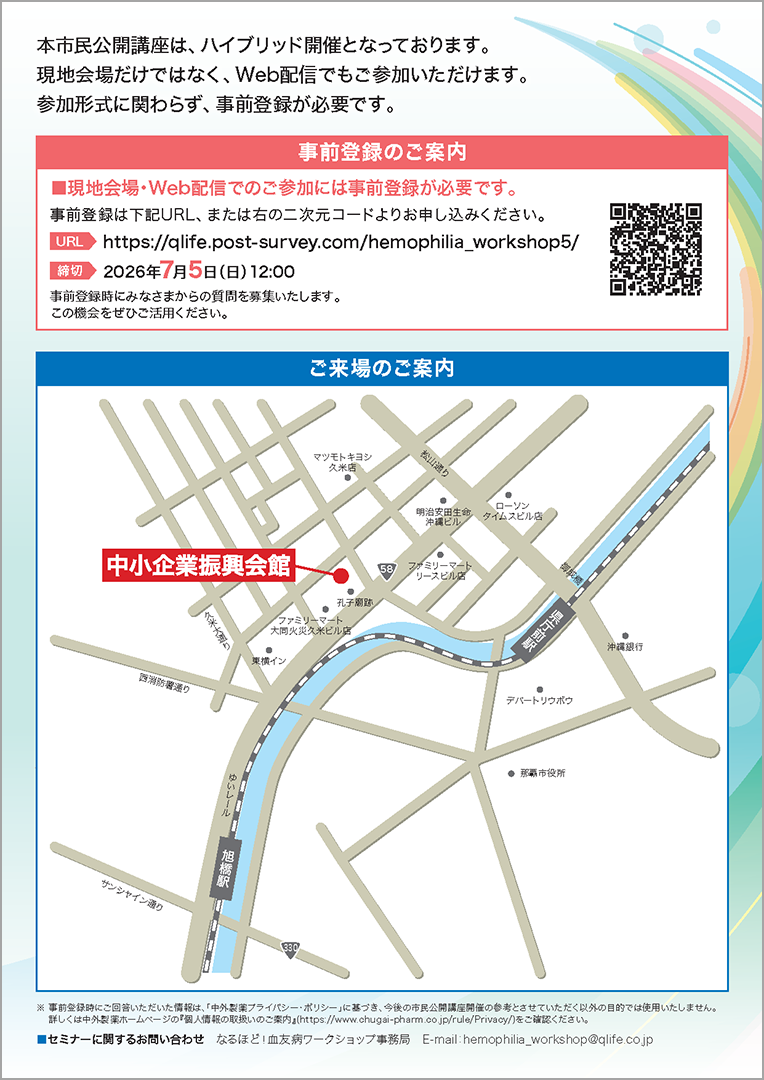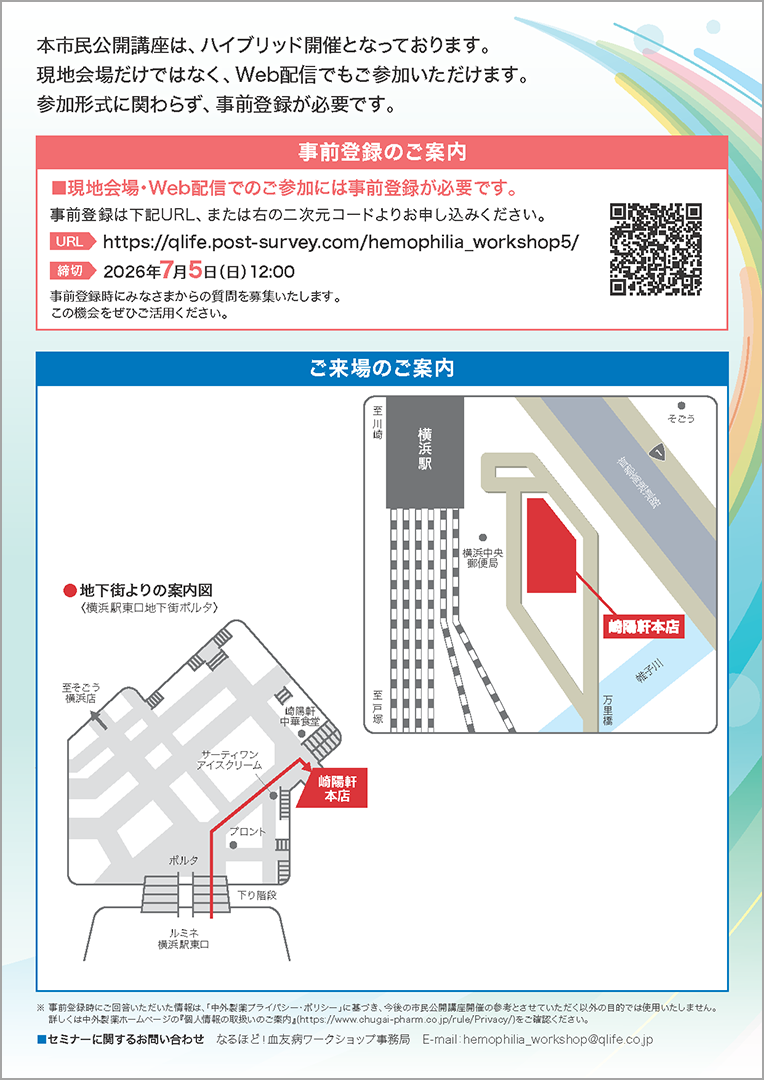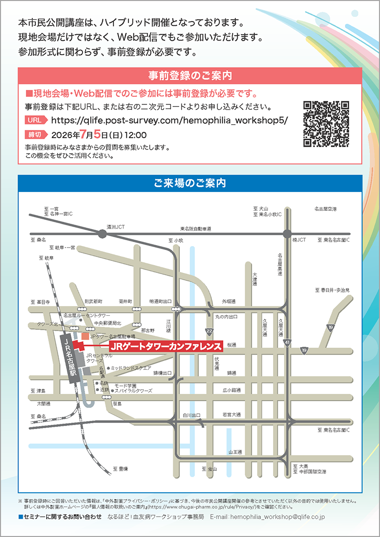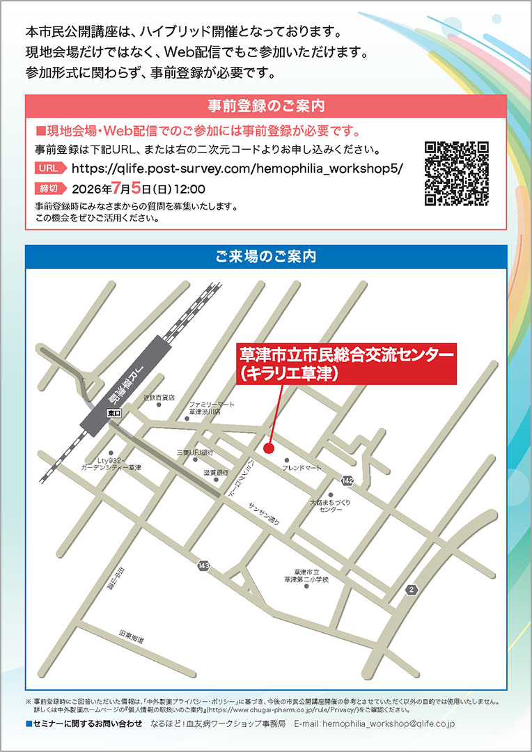 2026年7月5日(日)に、「なるほど!血友病ワークショップ5」と題して市民公開講座が開催されます。
