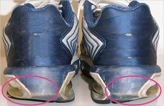 両足とも外側の靴底がすり減っている。